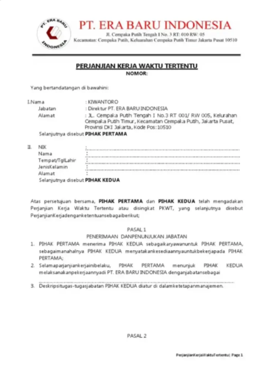 Gambar di atas dapat kamu jadikan rujukan untuk membuat kontrak PKWT. Jangan lupa masukkan setiap pasal sejelas mungkin, termasuk berapa lama kontrak berlaku, jam kerja, hingga besaran gaji.
